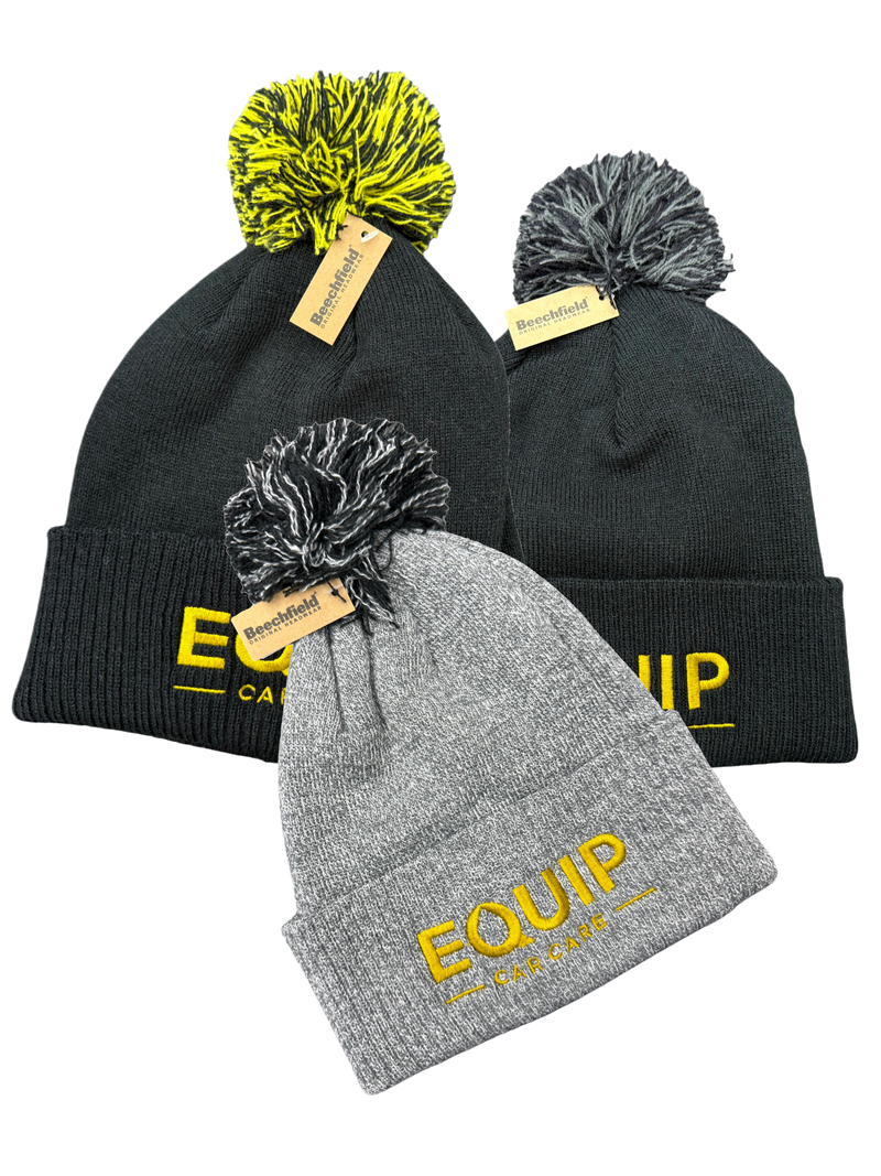 The perfect car cleaning accessory for cold days! Stay warm, stylish, and unmistakably premium with the Equip Beanie Bobble Hat. Designed for comfort and crafted with quality in mind, this beanie is ideal for chilly days, outdoor adventures, or simply elevating your casual look. Each hat features a playful bobble on top and an embroidered gold Equip logo, blending classic style with modern branding.